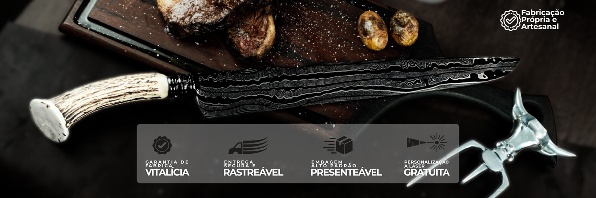 Atendemos todo o Brasil, com personalização a laser e garantia vitalícia de fábrica. Mais que ferramenta, nossas facas representam estilo, cuidado e história.