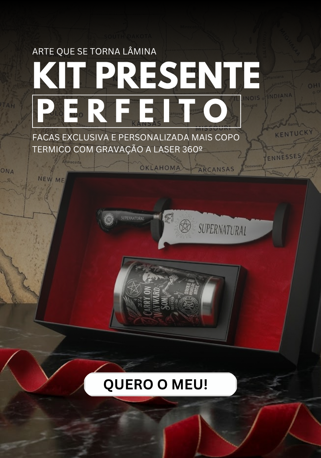 Kit Presente Supernatural - Faca + Copo Térmico - Gravação a Laser 360°