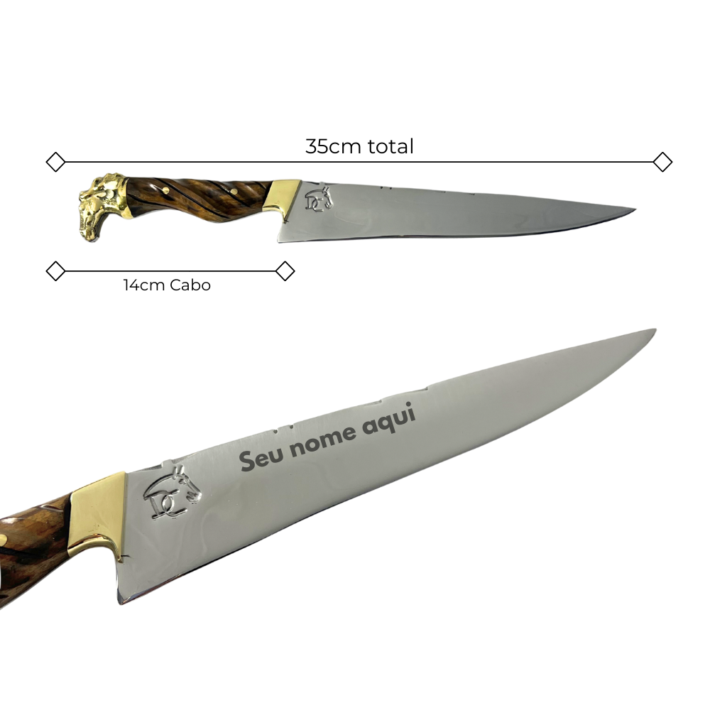 - Cabo Full Tang: Autêntica madeira natural, material tradicional valorizado na cutelaria gaúcha