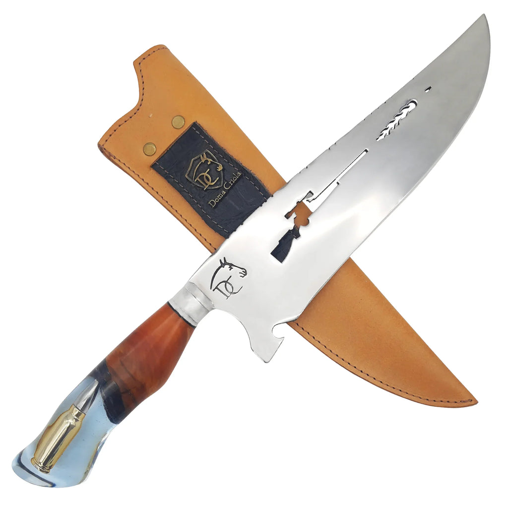 A Faca Sniper com Bala é uma peça exclusiva e impressionante. Com lâmina de 10 polegadas em aço inox premium e cabo em resina com bala real encapsulada, esta faca é perfeita para atiradores esportivos, militares e colecionadores.