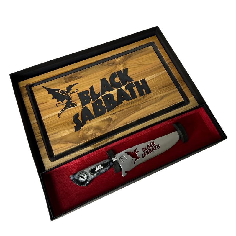 Kit premium para fãs de Black Sabbath e apreciadores de cutelaria artesanal de alta qualidade. Perfeito para presentear ou adicionar à sua coleção.