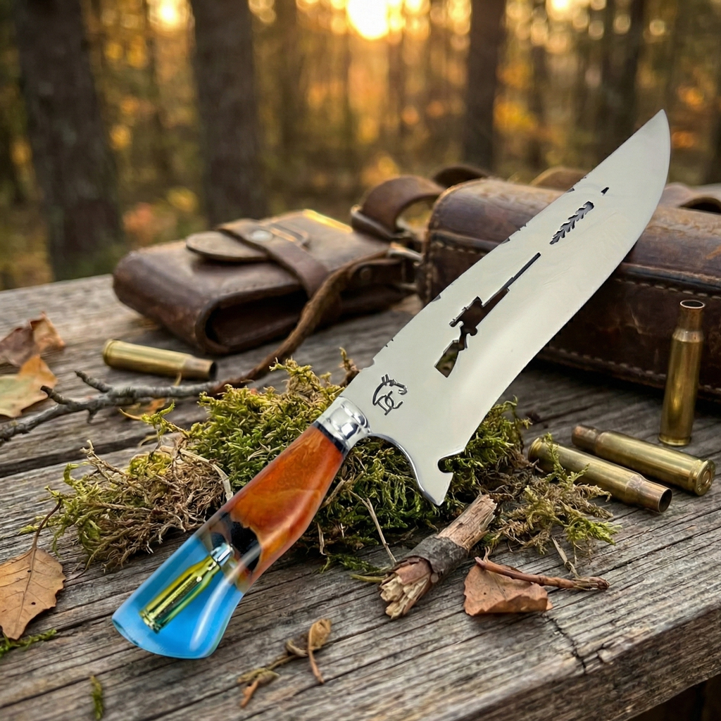 A Faca Sniper com munição no cabo é uma peça exclusiva e impressionante. Com lâmina de 10 polegadas em aço inox premium e cabo em resina com bala encapsulada, esta faca é perfeita para atiradores esportivos, militares e colecionadores.