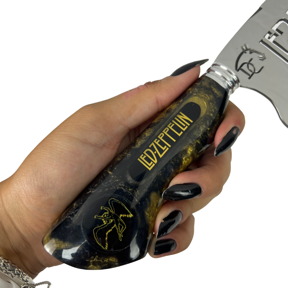 Faca Picanheira 8" Led Zeppelin - Cabo Resina Preta e Dourada