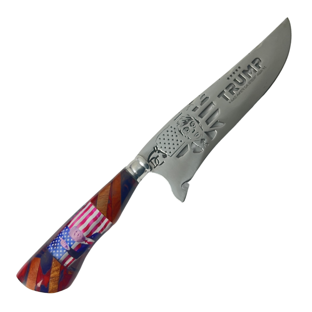 • Lâmina: Aço inoxidável de alta qualidade com gravação "TRUMP - Make America Great Again"