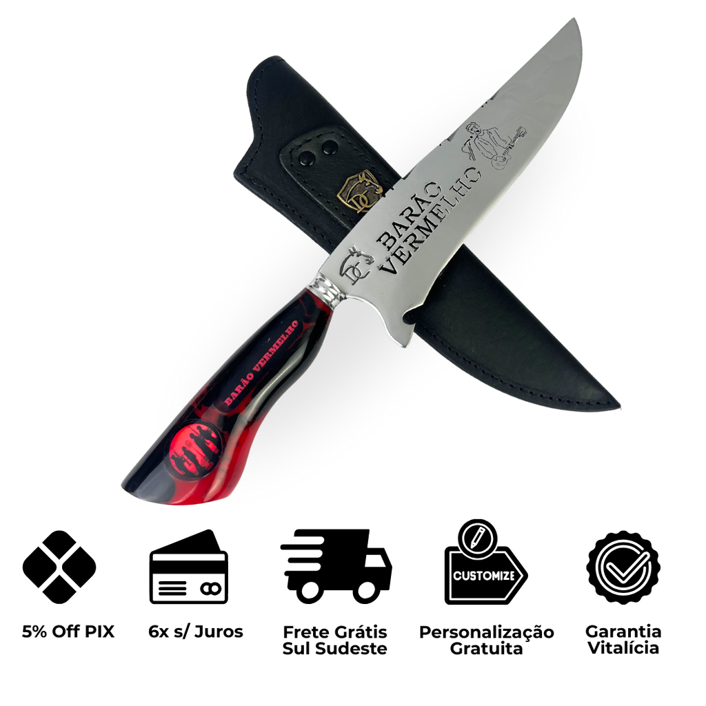 - Lâmina: 8 polegadas (≈20cm) com vazado temático Barão Vermelho