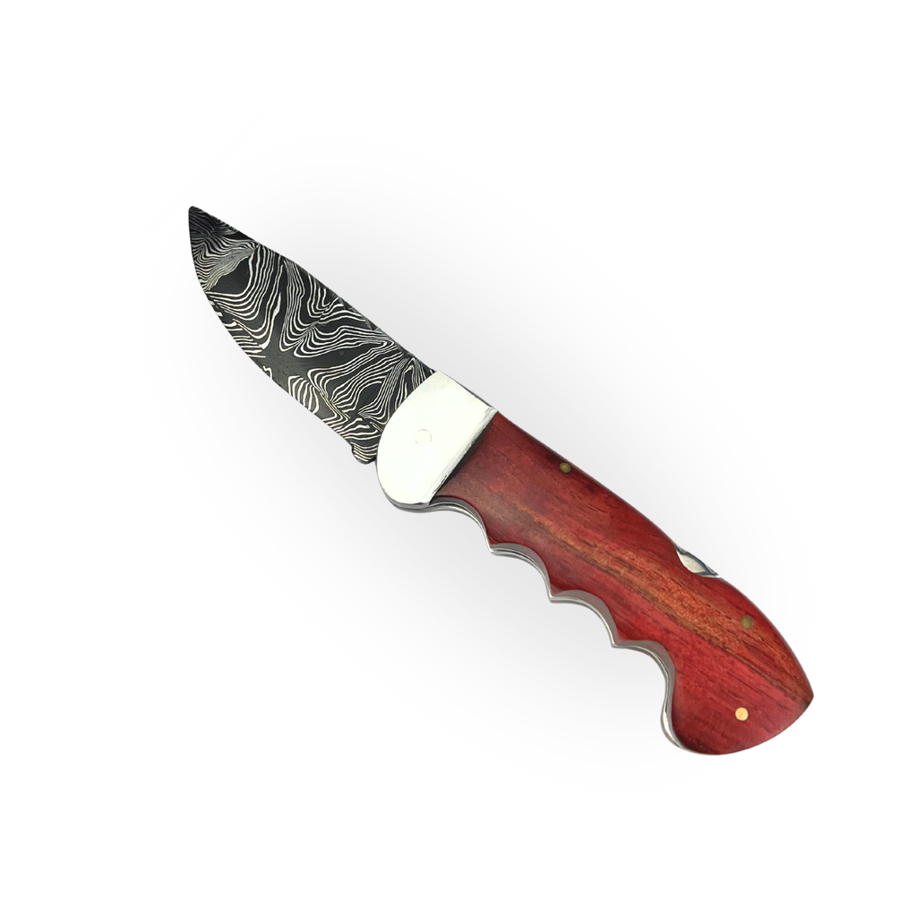 Canivete Damasco 4 Polegadas - Dorso Mosqueado - Cabo Madeira Selecionada com Trava