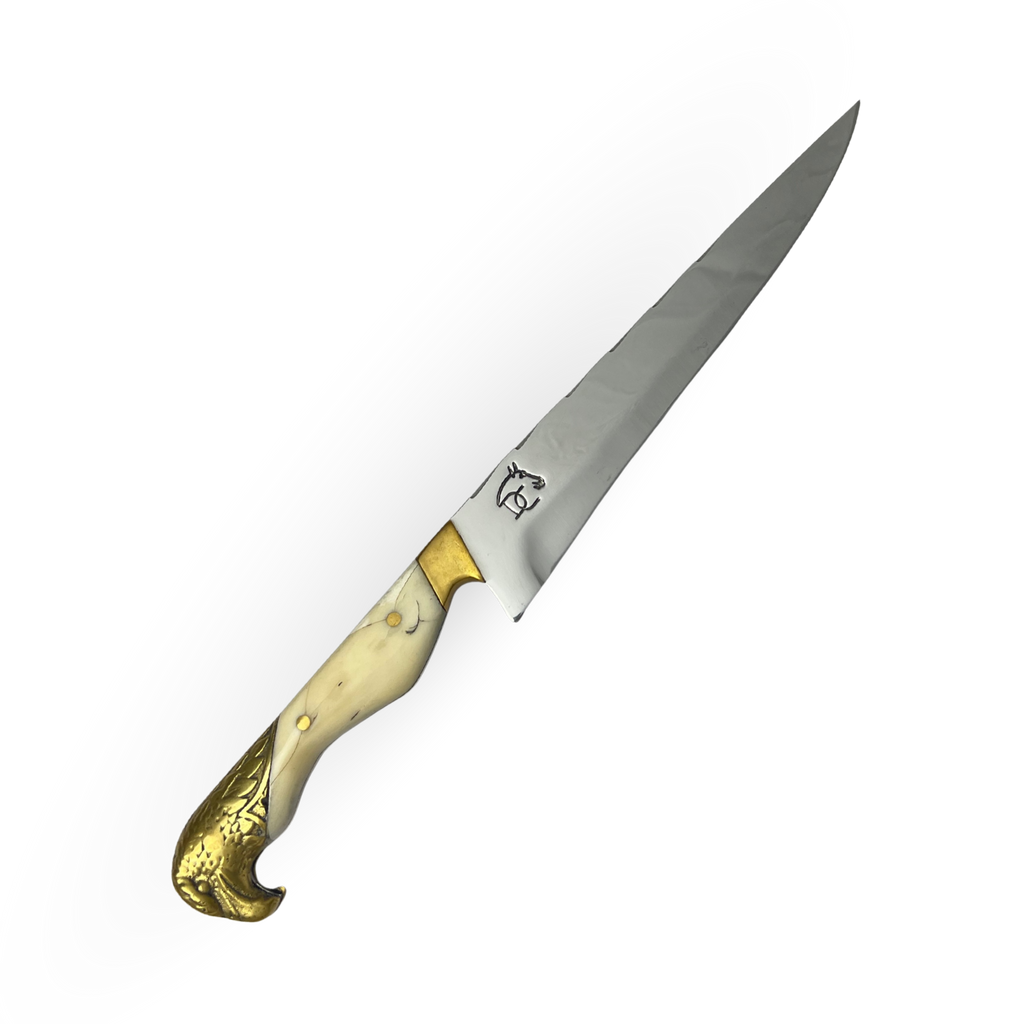 Faca Campeira Artesanal 9" Cabo Osso Bovino Latão Águia | Doma Crioula