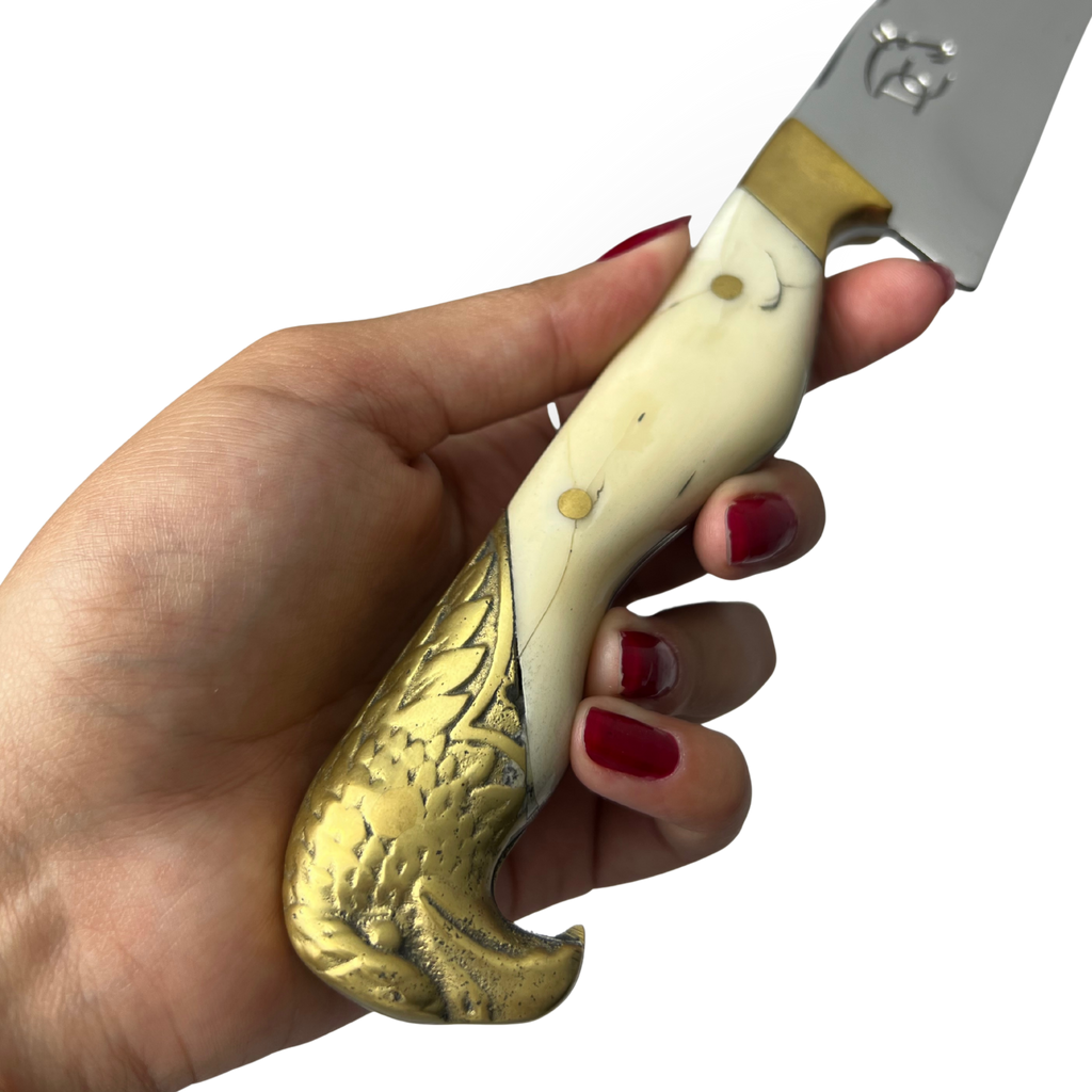 Faca Campeira Artesanal 9" - Cabo Osso Bovino e Latão com Águia