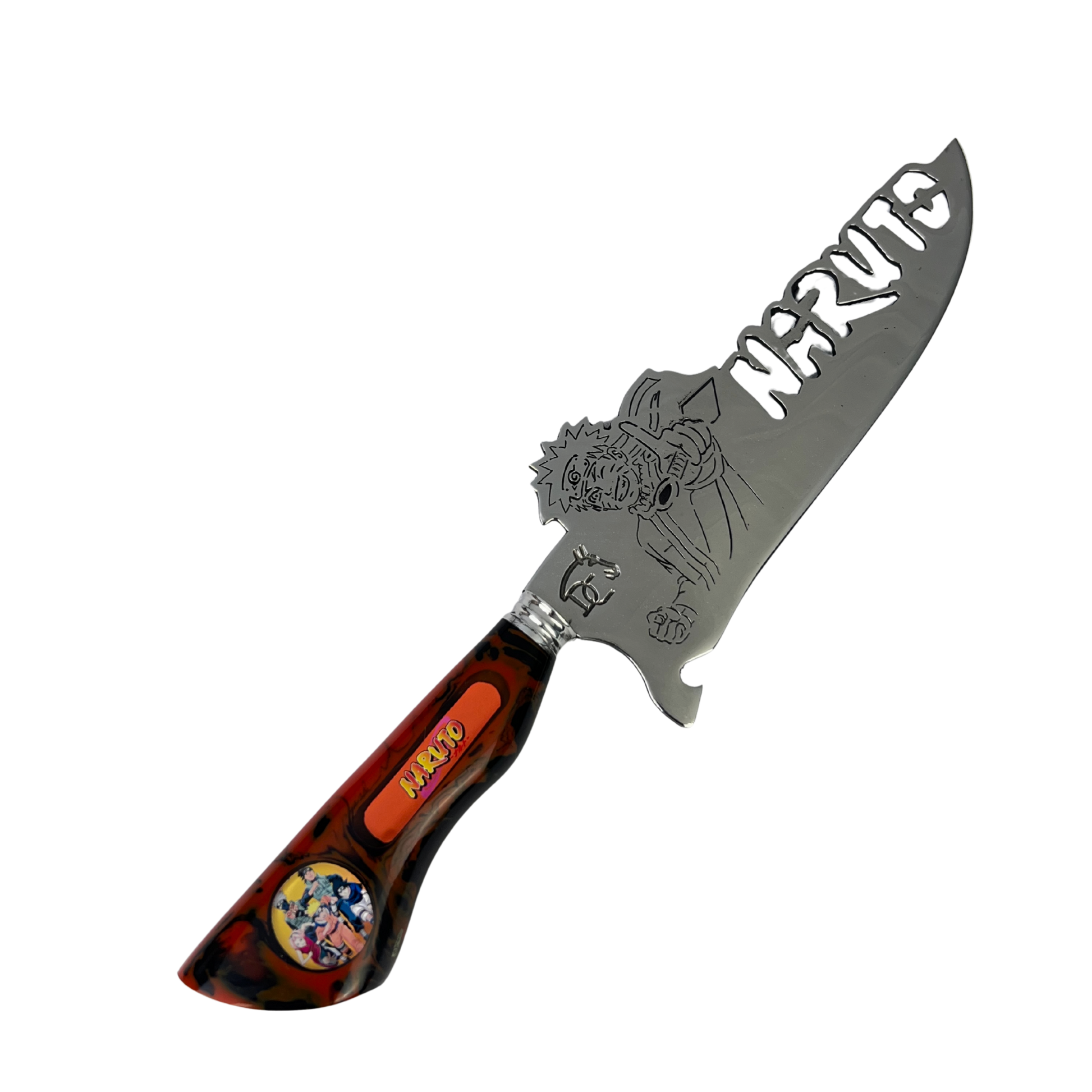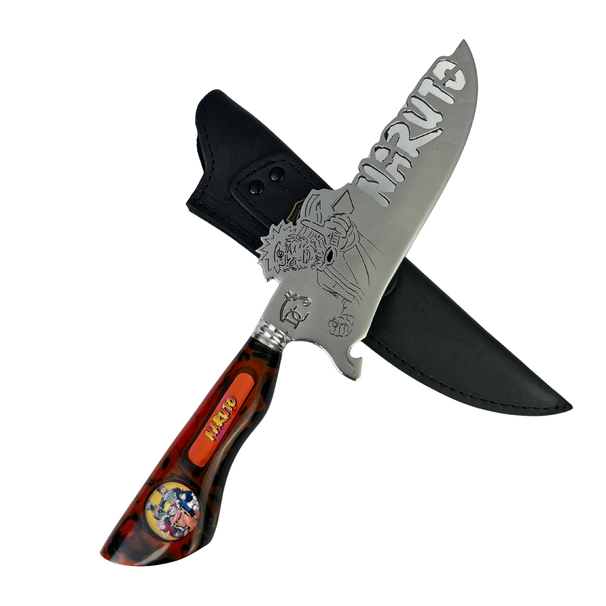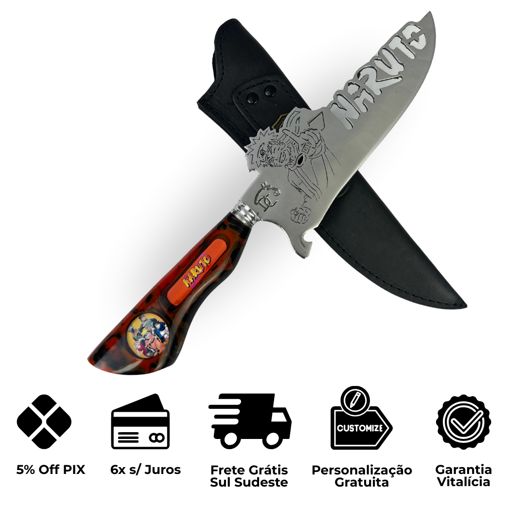 A Faca Naruto celebra o anime que conquistou gerações com sua história épica de superação e amizade. Com design exclusivo e acabamento premium em resina marmorizada laranja e preta, esta peça artesanal traz o espírito ninja de Konoha direto para sua coleção.