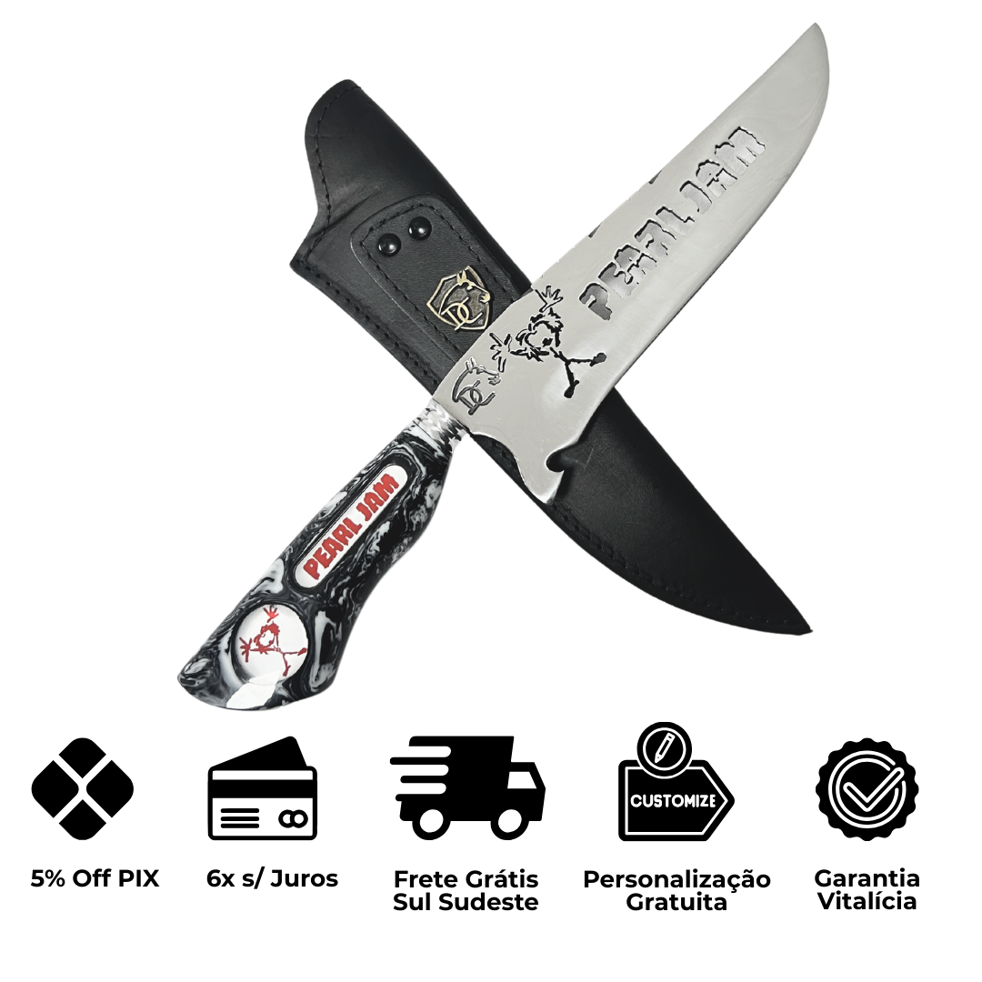 Para os verdadeiros fãs de grunge que também são mestres do churrasco, apresentamos a Faca Picanheira Pearl Jam - uma peça artesanal que une a intensidade do rock de Seattle com a precisão da cutelaria premium.