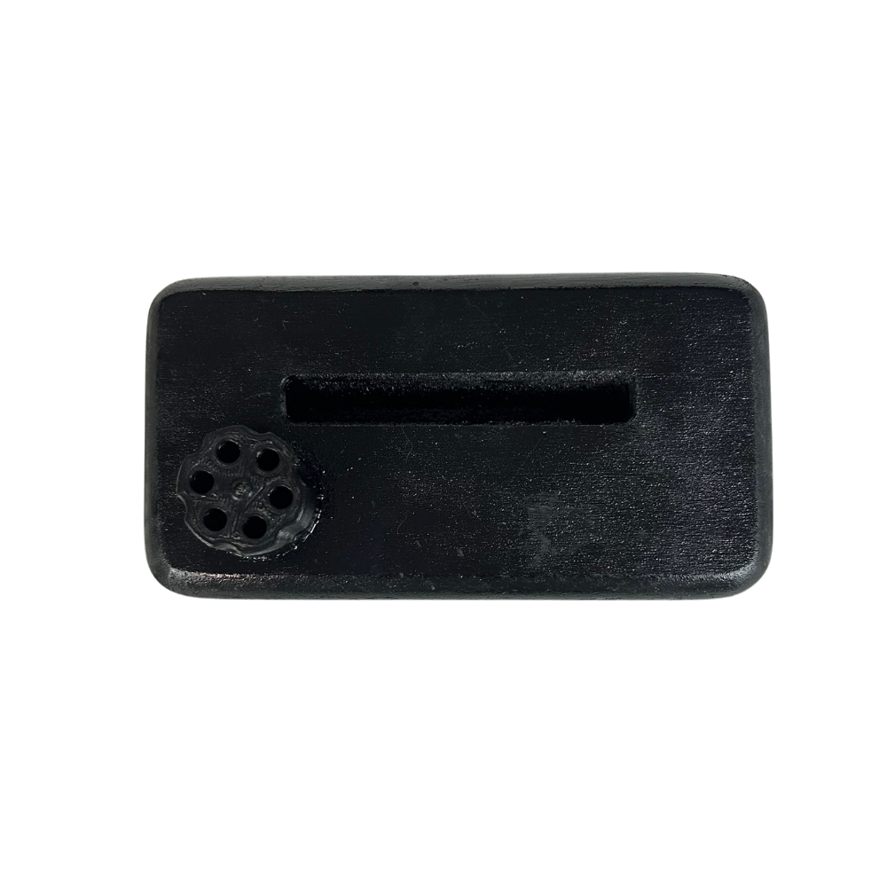 - Base/suporte em madeira preta