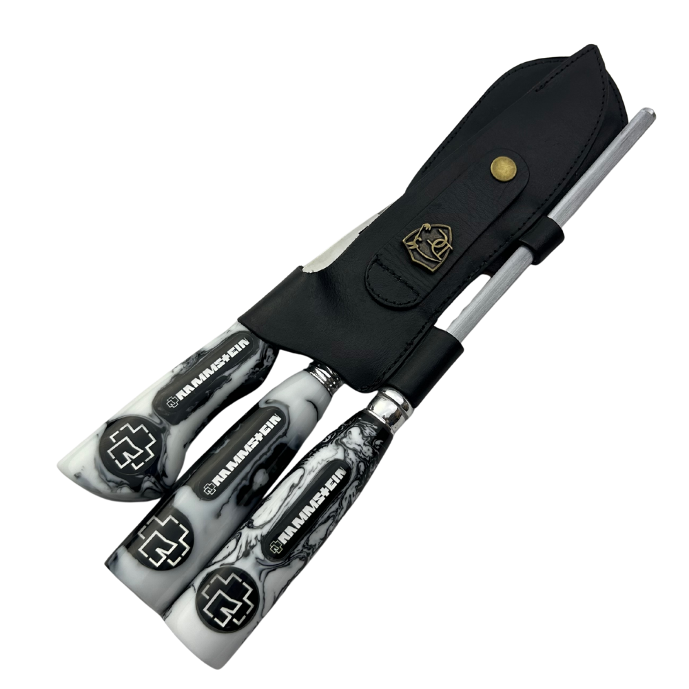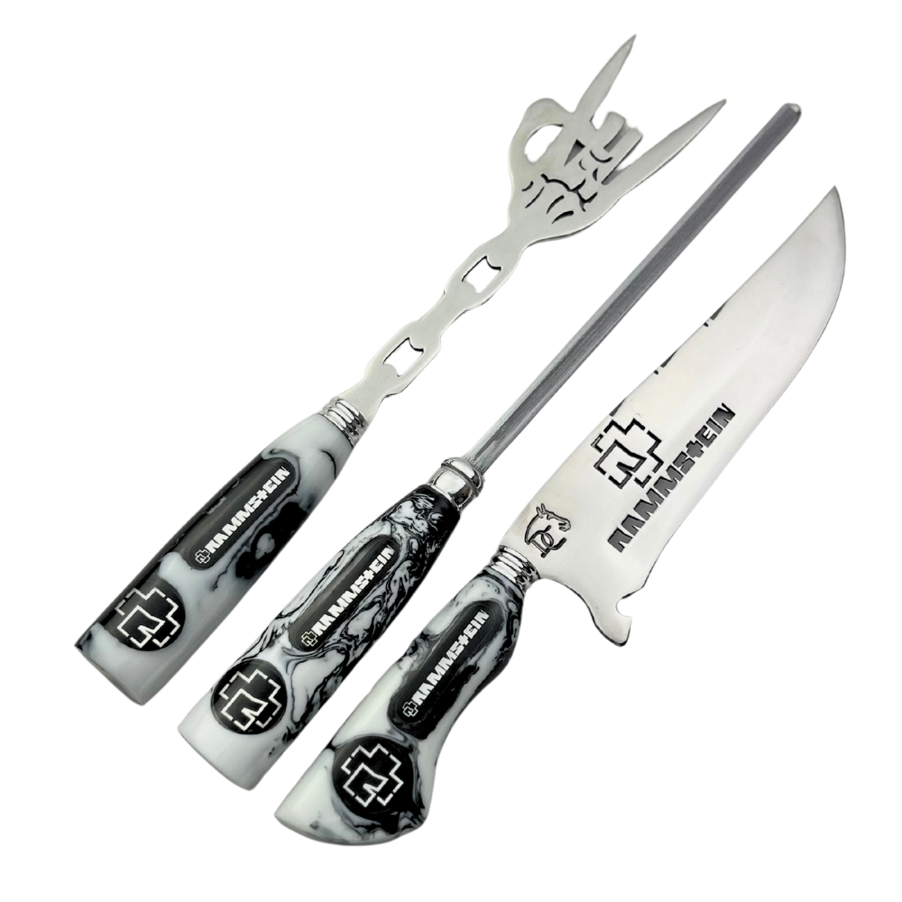 Para os verdadeiros fãs de Rammstein e apreciadores de cutelaria de alta qualidade! Este kit exclusivo de 3 peças combina a tradição gaúcha com a energia do industrial metal alemão, perfeito para churrasqueiros que valorizam exclusividade e performance.