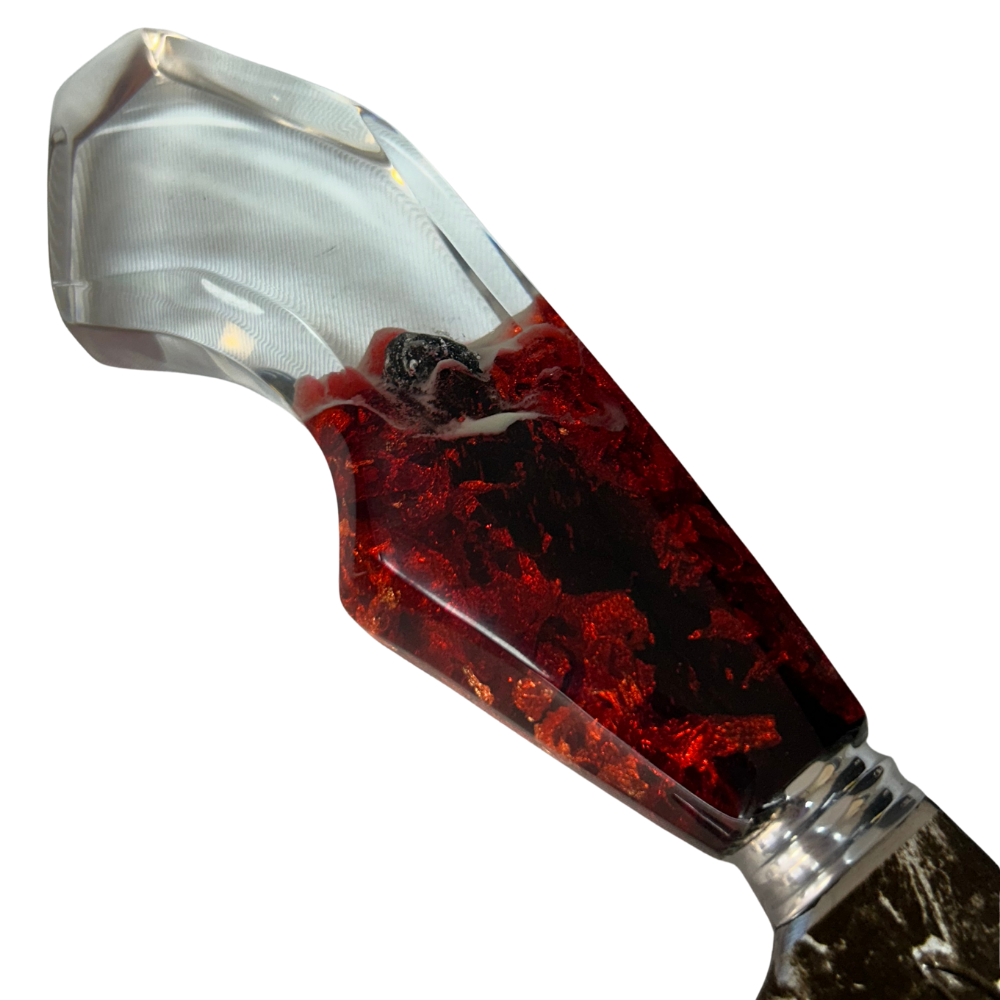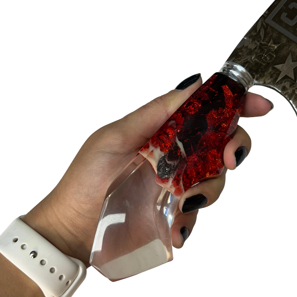 - Cabo: Resina artesanal brilha no escuro com pigmento fosforescente — efeito único e exclusivo